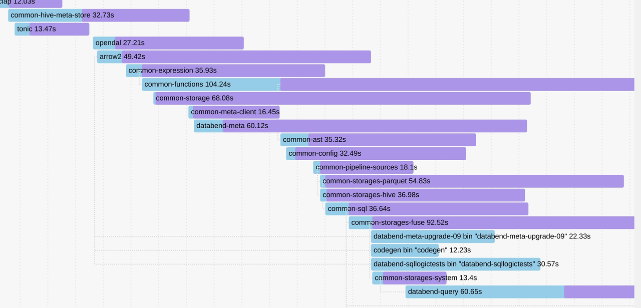 One of the simplest ways to improve compile time is to always keep up with upstream changes and participate in ecosystem building with the philosophy of "upstream first". Databend has been a loyal follower of Rust nightly from the very beginning and provided concise guidance for updating the toolchain and dependency relationships.