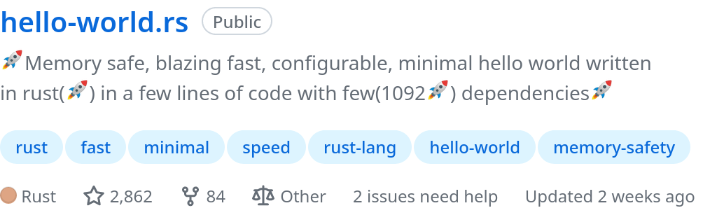 There is an interesting project in the Rust ecosystem known as mTvare6/hello-world.rs, which demonstrates how to create a Rust project that is as poorly written as possible.