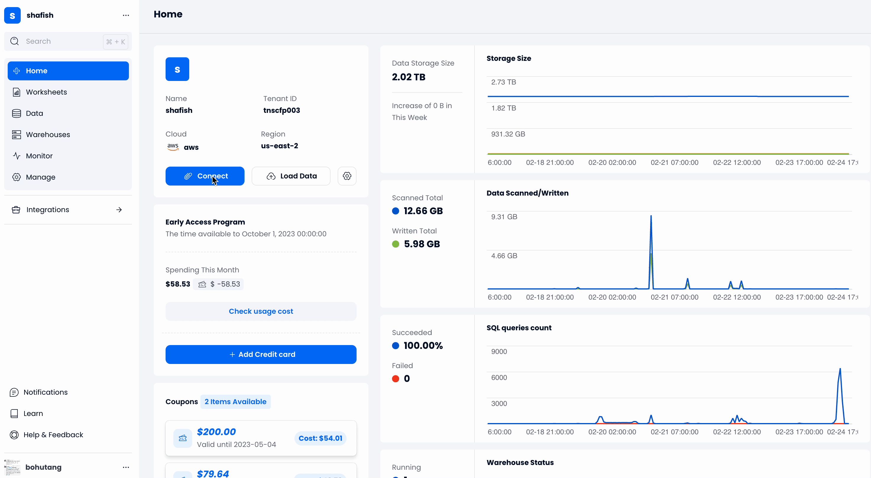 Before you dive in, let's have a preview of the main components and features of Databend Cloud to give you an idea of what it looks like.